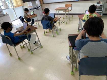 学習用アプリ・ロイロノートの操作にすぐに慣れ、どんどん使いこなしていく子どもたち。音読やプリントの宿題も、ロイロノートで行い提出しています。