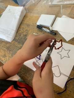 針金をペンチで切ったり曲げたりした後、バランスをとりながらつくります。