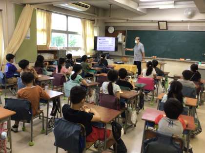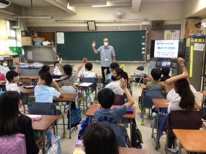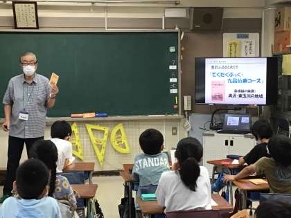 奥沢地誌保存会の染野様に「奥沢のまちの昔」と「てくたくブック」について教えていただきました。子どもたちは、昔の奥沢小学校はとても人数が多かったことに驚いていました。また、「てくたくブック」を使って、いろいろなところを調べてみたいと考えていました。