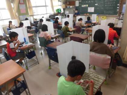 冷房の効いたランチルームに集めておいたお弁当を受け取り、各学級でいただきます。