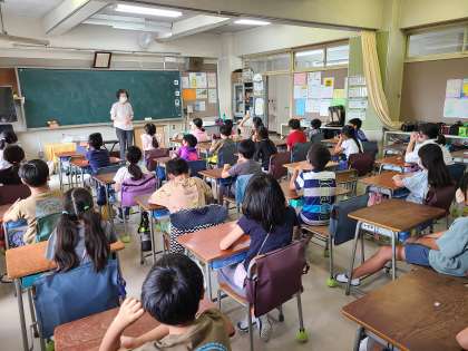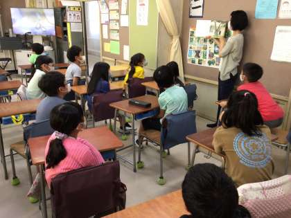 また、秋の七草をリズムに合わせて歌いました。休み時間に口ずさむ声が聞こえてきました。