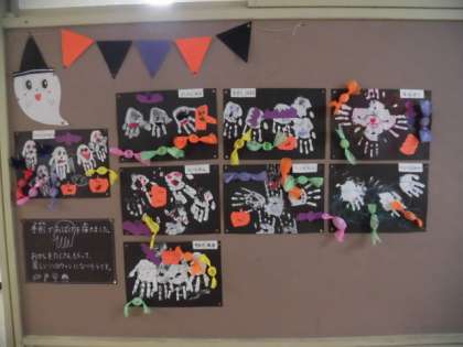ハロウィンは子どもたちがお化けや魔女に仮装したりするお祭りですが、わかば学級の作品には可愛いお化けがたくさん出来上がりました。