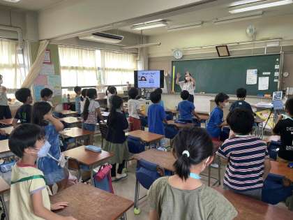最後の「rock scissors paperゲーム」では、イエローチームとブルーチームに分かれてエクササイズ!勝った人はみんなの「what’s animal do you like?」に「I like 〜」と答えました。