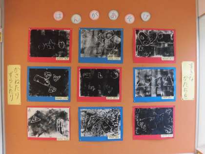 つくしの壁に貼ってある‟はんがあそび”の作品。