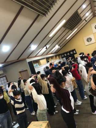 熊井先生とストレッチをして、ハイキングの準備万端!