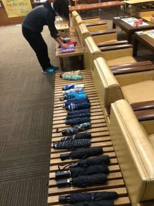 昨日使った折り畳み傘は、宿舎の方が干して畳んでくださいました。