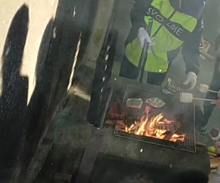 火おこし体験をしました。さらに、自分たちで起こした火の上でりんごを焼きました。初めての焼きりんご体験にみんな大興奮!待ちきれず、じっくり焼き上がる前にパクパク食べちゃう子も。最後は焼きマシュマロを食べ、里山巡りの疲れも癒やされました。