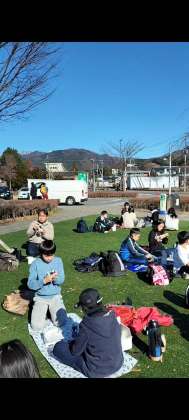 お昼は田園プラザの芝生の上でお弁当をいただきました。天気に恵まれて無事に午前中の活動を終えました。この後はお土産を買って、奥沢に帰ります。