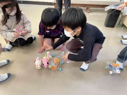 「あそんで ためして くふうして」で、動くおもちゃ作りをしました。