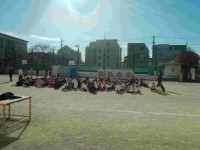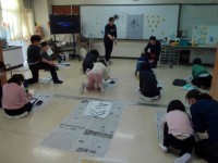 日本語「筆を使って文字を書こう」の学習では、水で書ける用紙に筆を使って文字を書きました。