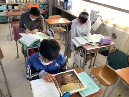 宮沢賢治作品を図書館でまとめて借りてきて、思い思いの作品を手に取り、独特の表現を味わっています。