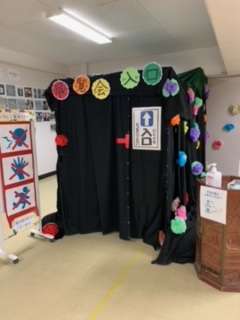 入り口は6年生展覧会実行委員のアイデアで作られています。