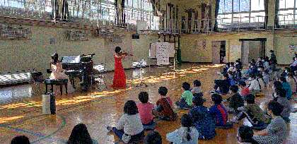 子ども達はピアノとヴァイオリンの演奏に聴き入っていました。
