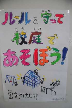 ルールを守って校庭であそぼう。