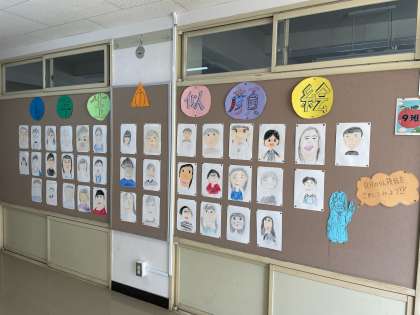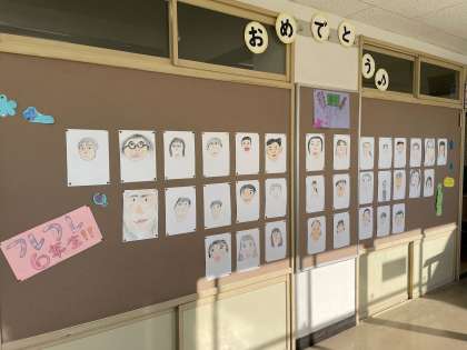 廊下には、5年生の提案で、1年生が描いた6年生の似顔絵が飾られました。自分や友達の顔を探して、照れながらも嬉しそうな6年生でした。