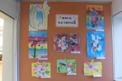 つくし教室の外に飾られている「世界にひとつだけの花」。
