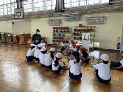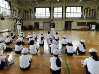 読売巨人軍をゲストティーチャーに迎え、野球教室が行われました。