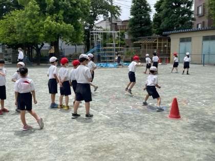高く跳んだり、遠くへ跳んだり、リズムに合わせて跳んだりと、いろいろな場でいろいろなジャンプをすることを経験します。