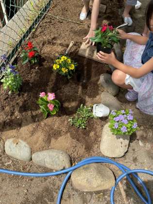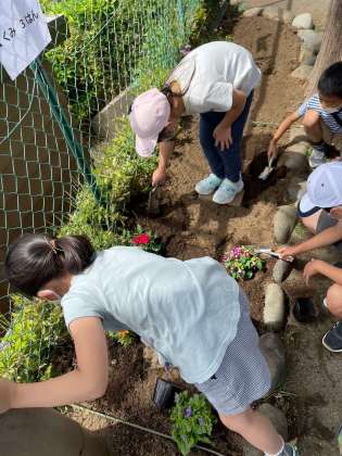 奥沢の町に緑を増やそう!と、東玉川公園に、花を植えに行ってきました。ひとまちネットさんと保護者ボランティアの方に教えていただきながら、上手に植えていました。