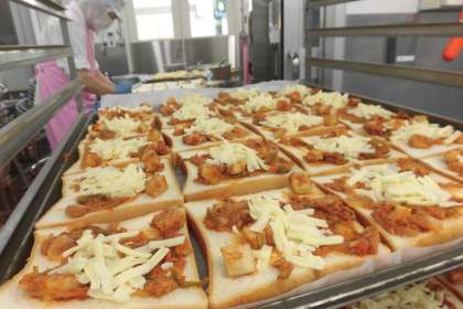 手作りのピザソースをのせたシーフードピザトーストでした。サンプルを見に来た児童たちが「これすき」「おいしそう」と声をかけてきてくれました。きっとたくさん食べてくれたのではないでしょうか。