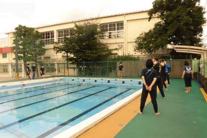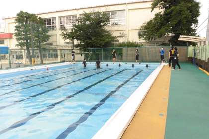 先生達は救命救急の講習に続き、先週は、水泳指導研修を行いました。