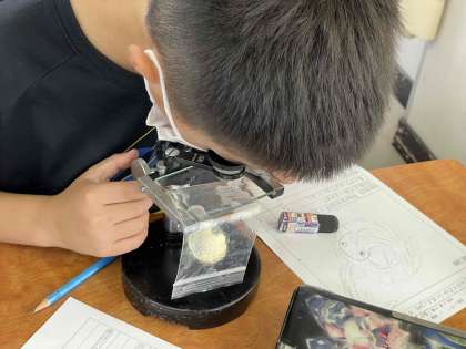 「目が見える。」「子メダカが小さくてかわいい。」「先生、めすが卵を産んでいるよ。」と、時間も忘れて観察する子ども達です。