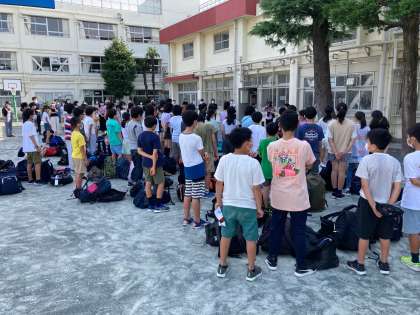 いよいよ本日から6年生の日光林間学園が始まります!出発式の様子です。