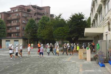 速やかに先生の指示に従いそれぞれの昇降口や専科の教室から避難してくる様子は落ち着いたものでした。