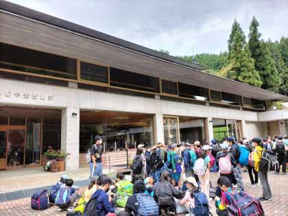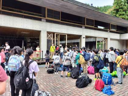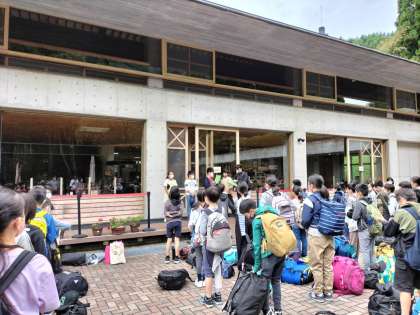 ふじやまビレジ到着。室長の司会で開室式です。お宿の人へのよろしくお願いします、というあいさつもしっかりできました。