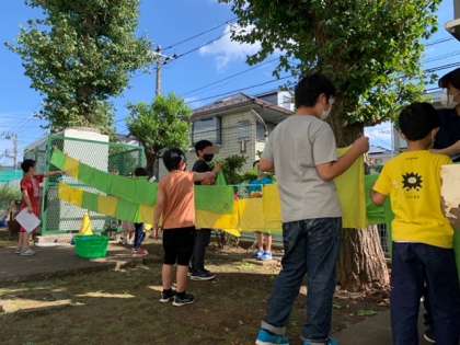 奥沢発表会で観客席の椅子に敷かれていたスカーフをみんなで洗濯しました。