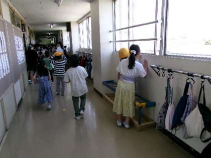 6年生教室は1年生教室の隣に位置しています。日々、6年生が1年生の世話をよく行っている姿を見かけます。朝、1年生を出迎えて教室で朝の準備を手伝ったり、休み時間が終わると教室まで送りとどけたり、困っていると手伝ってあげたりと、とても優しい6年生です。1年生に寄り添う6年生の姿は、見ている者の心を温かくします。6年生、ありがとう。奥沢小学校の誇りです。