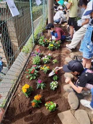 6月1日(木)、3年生が花植え活動を行いました。人&まちネットの方々に花の種類や植え方を教えていただき、丁寧に作業しました。東玉川公園がお花で明るくなりました。