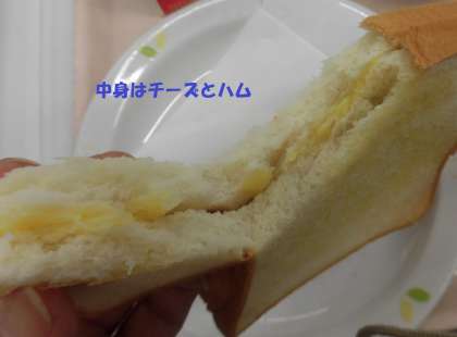 食パンの中にハムとチーズをはさみ焼きました。