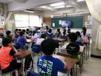 今日の全校朝会では、学校長から水に関する話をしました。水泳の学習や川遊び、海水浴は楽しいものですが、たくさんの危険が潜んでいます。特に小学生は川での事故が多く、川に潜む危険について紹介しました。必ず大人と一緒に行くことや、川に潜む危険を忘れないようにすること、ライフジャケットを着用することなど、十分に気を付けてほしいと思います。全校朝会始めの挨拶は6年生が行いました。6年生の挨拶では、暑い日が続くのでハンカチを2枚用意するとよいことなどを話してくれました。素敵なスピーチでした。