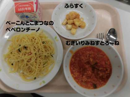 「給食いいん会」からいくつかのリクエストがありましたので、7月はこんだてにいれていました。おふで作ったふらすくも、みんなにこにこしながら食べていました。