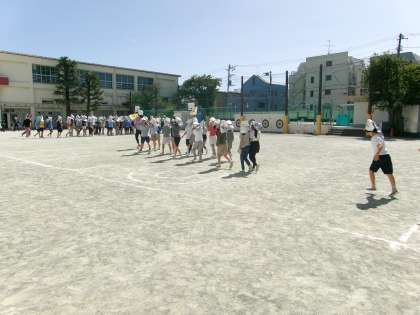 今日は、理科室からの出火を想定した避難訓練を行いました。実際に校内の防火シャッターを下ろし、避難扉を通って避難する体験をしました。姿勢を低くすること、口と鼻をハンカチなどで覆うことなどを再度確認し、命を守る学習ができました。