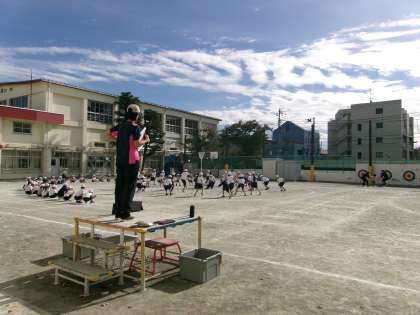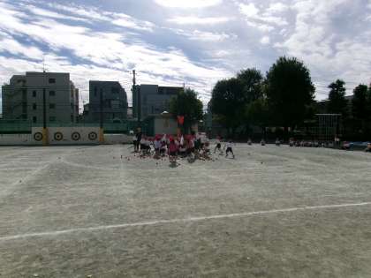 運動会まで1週間。奥沢小では、毎日、運動会に向けて練習に励む子どもたちの姿が見られます。今日は、1・2年生が玉入れの練習をしました。ダンスと玉入れのコンビネーションによる運動が、見ている人も楽しませます。赤勝て、白勝て、本番に向かってがんばれ!
