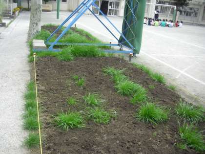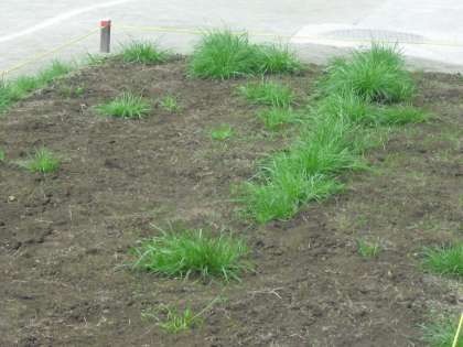 昨年の芝生が少しずつ伸びてきていましたが、前面に緑が広がるように