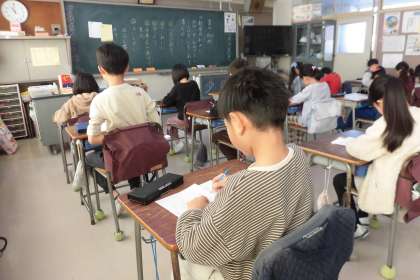 新しい年の始まりに、心をこめて文字を書きました。よい姿勢で、ゆっくりと丁寧に、よく手本を見ながら。学習したことを生かして、どの子も堂々とした気持ちのよい字を書くことができました。自分の作品が仕上がってからも、まだ頑張っている友達のために静かに過ごし、立派でした。作品を廊下に掲示するのが楽しみです。