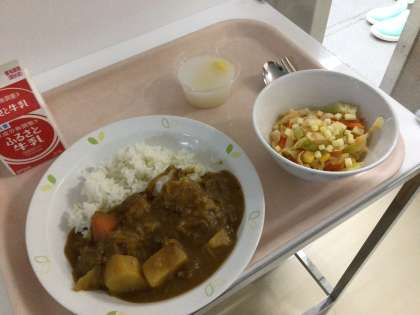 朝から給食室前にはカレーのいい匂いがしていました。