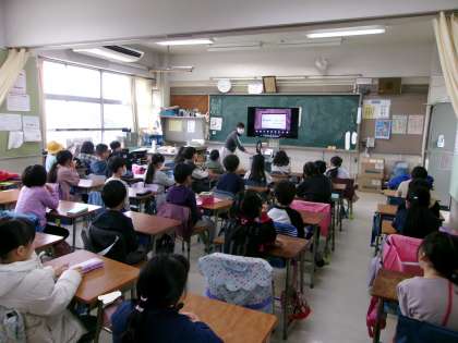 今日の全校朝会では、6年生が、まとめの季節であること、まだまだ寒いので体調に気を付けることなどを話し、会が始まりました。学校長の講話では、来年度始まるチーム担任制について話しました。児童は、来年度に思いを馳せ、一生懸命に話を聞いていました。