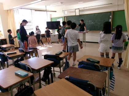 今年度から、たてわり班活動の組み合わせを、1年生から6年生までの全学年を縦割りにし、班を構成します。一つの班に1〜6年生がいて、その班で活動をしていきます。今日は、今年度初回です。みんなで自己紹介をし合い、顔合わせをしました。初めて集まったので6年生は緊張していましたが、司会進行を行い、次回行う遊びを決めることができました。1年間、しっかりと班のメンバーをまとめ、楽しい活動ができるようがんばってくれることでしょう。