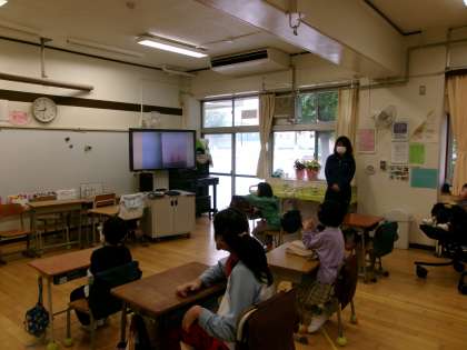 今日は5月の全校朝会の日です。6年生の挨拶では、季節の変わり目なので体調に気を付けてほしいことを話してくれました。学校長の講話では、「ねずみくん おおきくなったら なにになる?」という絵本を読み聞かせました。たくさんの生き物が出てくるお話で、それぞれの生き物が、それぞれ自分の特徴や「良さ」を生かした仕事に就きたいと、将来の夢を語ります。子どもたちにも自分の「良さ」を見つけてほしいと伝えました。子どもたち一人一人にきっとたくさんの「良さ」があります。学校生活の中で、人との関わりの中で、その「良さ」に気付けるといいですね。