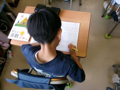 2年生が算数の時間に、大きな数の学習をしています。たくさんあるクリップの数を数えるところから始まりました。一つずつ丁寧に数えたり、10のまとまりで数えたりと、数え方は様々でしたが、友達と数え方について話し合い、よりよい方法を見つけていました。百の位の数の位取りを行い、3桁の数の読み方や表し方を学びました。