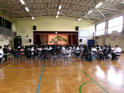今日は、狂言の演者の方とスタッフの方々が来てくださり、6年生が古典芸能教室に参加しました。東玉川小学校の6年生も来校し、一緒に学習しました。狂言の楽しみ方を教わり、本物に触れたことで、興味をもった児童もいたようです。舞台の後には、ワークショップも行ってくださり、実際に動きを体験するなど、楽しい学習になりました。