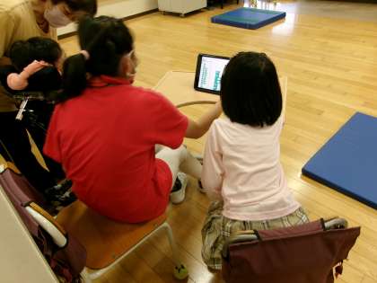 つくし学級では、プログラミングを学習しています。今日は、ドローンを飛ばすという学習です。課題は、2つの島に着地することです。1秒で進む距離をもとに、確実に島Aと島Bに着地できるようプログラミングを組んでいかねばなりません。友達と話し合って何度もやり直しをし、成功させることができました。ドローンが社会や人のために活用されていることも学びました。このプログラミングで学んだことをもとに、つくし学級の子どもたちも誰かのためにできることを考えています。