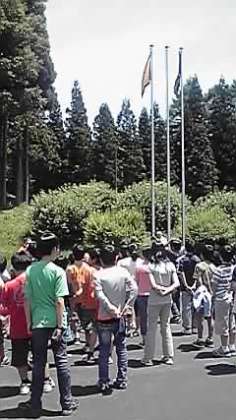予定通り、10時半に川場に到着しました。みんな元気でバスの中でもクイズや歌で盛り上がっていました。 歴史民俗資料館を見学し、昼食後、宿舎の中野ビレッジに向かいました。開園式は三宿小学校の皆さんと一緒に行いました。進行は奥沢小の児童がつとめました。
