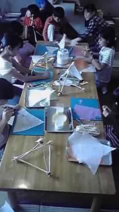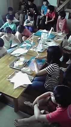 2日目の活動は、村めぐりがメインですが、出発前に昨日のアート製作の仕上げをしました。夜の集いが楽しみです。