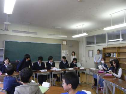 放課後15:45〜16:30 奥沢中学校の生徒会室で、奥沢中、奥沢小、東玉川小の生徒・児童交流会を行いました。