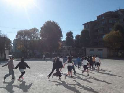 今日から「レッツラン!」の取り組みが始まりました。中休みと昼休みの終わり部分の時間を使って、学年ごとに持久走に挑戦します。今日は、5年生と6年生が挑戦しました。高学年なので4分間です。多くの児童が最後まであきらめずに走り切りました。体力向上の一助になればと思います。